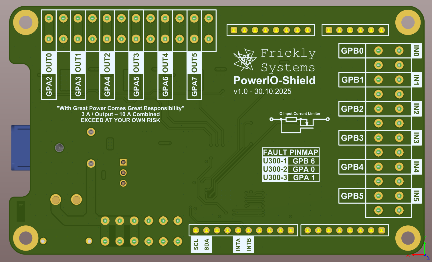 The shield offers six 48V-capable inputs and 6 high-side output drivers capable of driving 3A+ each and a total current of 10A for supply voltages of up to 48V.