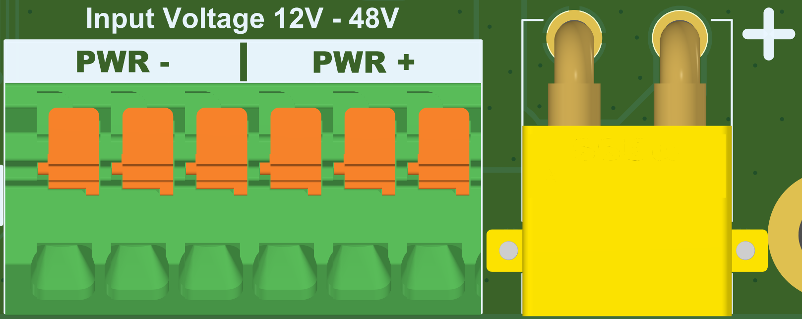 The Power IO shield’s supply connectors. Spring terminal (Left) and XT-30 connector (right)¶